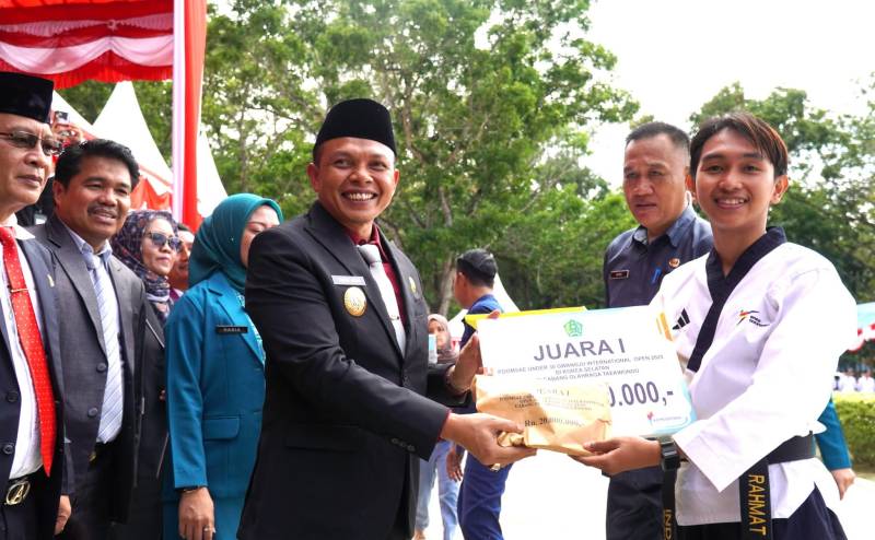 Seusai upacara, Bupati Konawe memberikan penghargaan kepada para pemuda dan pemudi atlet Taekwondo yang telah menorehkan prestasi gemilang di tingkat nasional maupun internasional.