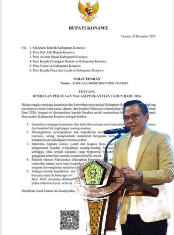 Dimana surat edaran tersebut merupakan sebagai upaya dalam rangka menjaga keamanan dan ketertiban masyarakat Kabupaten Konawe, serta mendukung terciptanya situasi yang aman, damai, dan kondusif, khususnya menjelang malam pergantian tahun 2026.