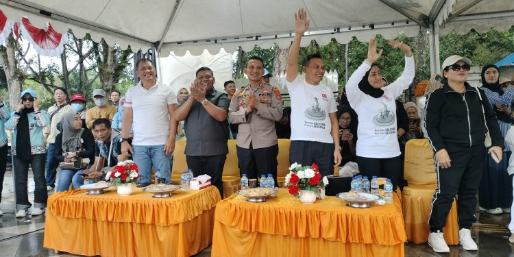Menariknya, Bupati dan istri kompak mengenakan kaos bergambar Monumen Kalosara bertuliskan Monumen KALOSARA Konawe BERSAHAJA, yang menjadi perhatian masyarakat di lokasi acara.