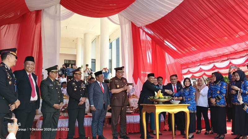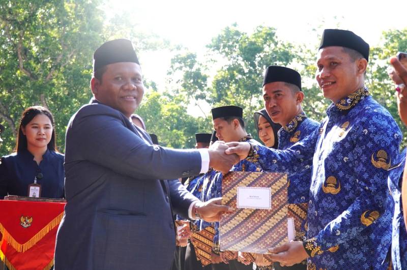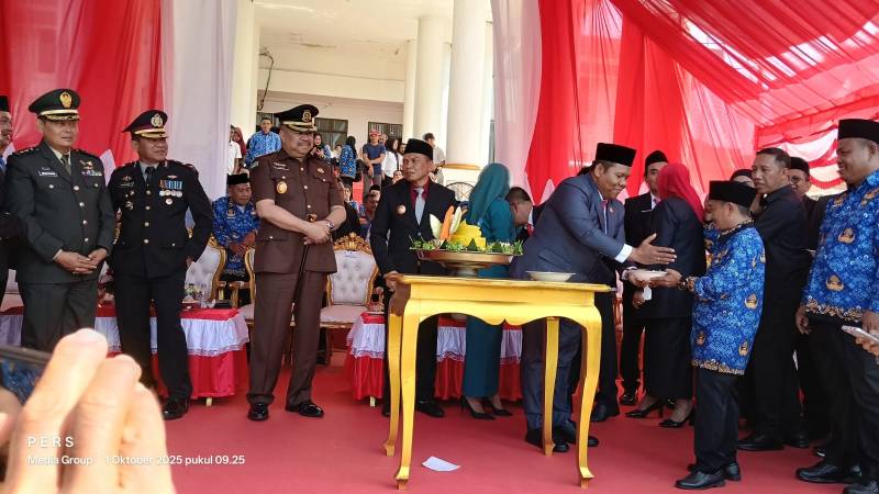 BAITSULTRA.COM./KONAWE – Sejumlah anggota Dewan Perwakilan Rakyat Daerah (DPRD) Kabupaten Konawe, mengahadiri penyerahan Surat Keputusan (SK) Pengangkan kepada 2.927 Pegawai Pemerintah dengan Perjanjian Kerja (PPPK) di halaman Kantor Bupati, Rabu (1/10/2025).