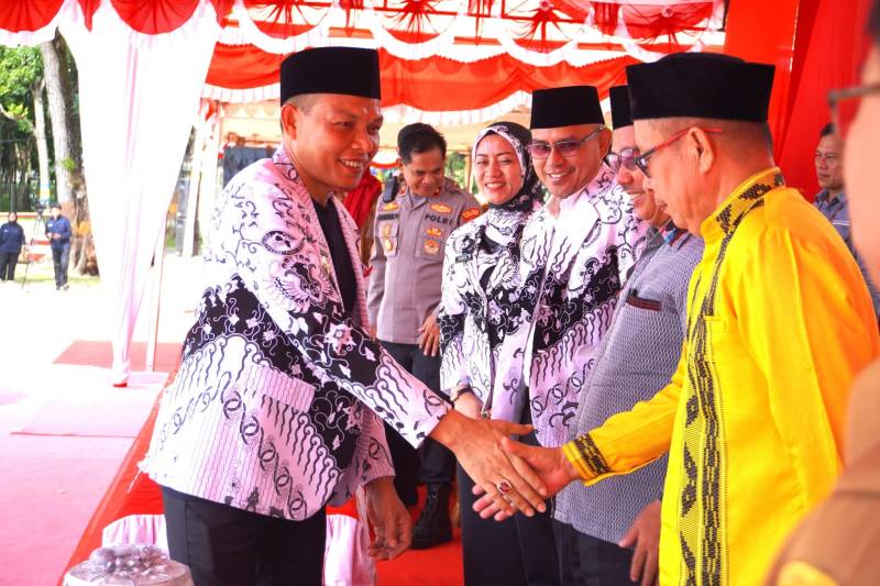 Membacakan amanat Menteri Pendidikan, Bupati Yusran menyampaikan, dalam satu tahun kepemimpinan Presiden Prabowo Subianto dan Wakil Presiden Gibran Rakabuming, telah melakukan langkah konkret untuk meningkatkan kualifikasi, kompetensi, dan kesejahteraan guru.
