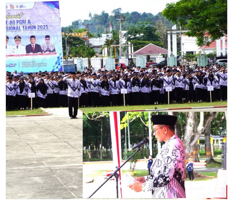 BAITSULTRA.COM./KONAWE – Pemerintah Kabupaten (Pemkab) Konawe menggelar upacara peringatan Hari Ulang Tahun Persatuan Guru Republik Indonesia (PGRI) ke-80 sekaligus peringatan Hari Guru Nasional (HGN) tahun 2025 di halaman Kantor Bupati Konawe, Selasa (25/11/2025).