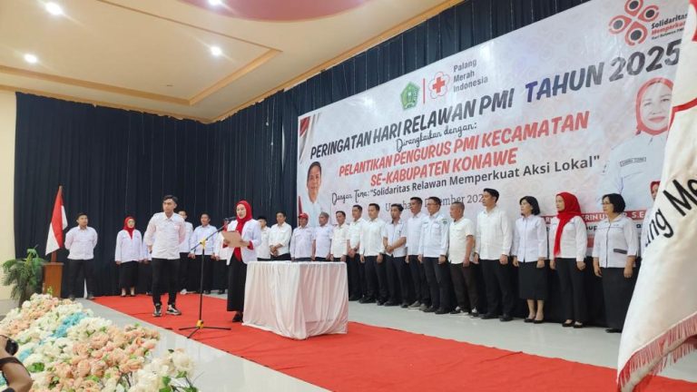 BAITSULTRA.COM/KONAWE – Palang Merah Indonesia (PMI) Kabupaten Konawe secara resmi melantik 336 pengurus Kecamatan yang tersebar di 28 Kecamatan untuk masa bakti 2025–2030 pada Sabtu (27/12/2025).