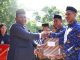 Nampak para pengendara dan masyarakat yang melintas sangat antusuas menerima bingkisan paket Takjik yang disuguhkan Polres Konawe.